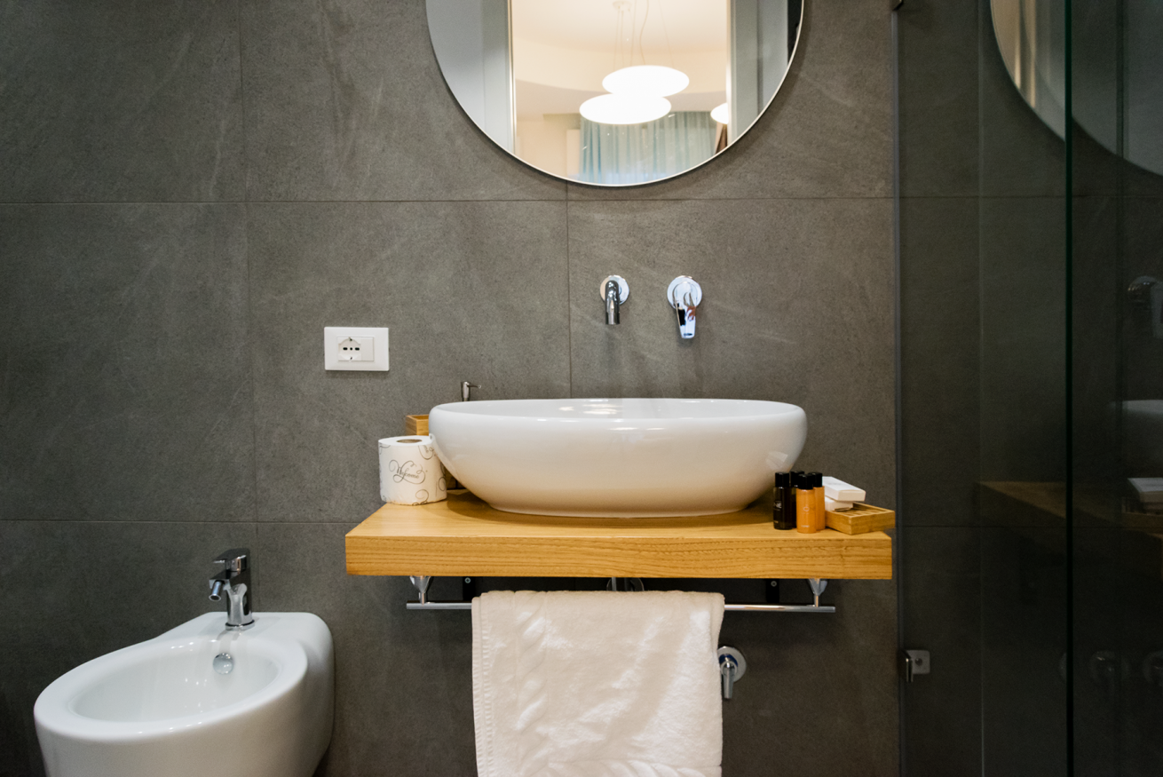 Le forme tondeggianti e colori vivi che dipingono la suite, ricordano alla memoria il frutto dal carattere amaro e retrogusto dolce.